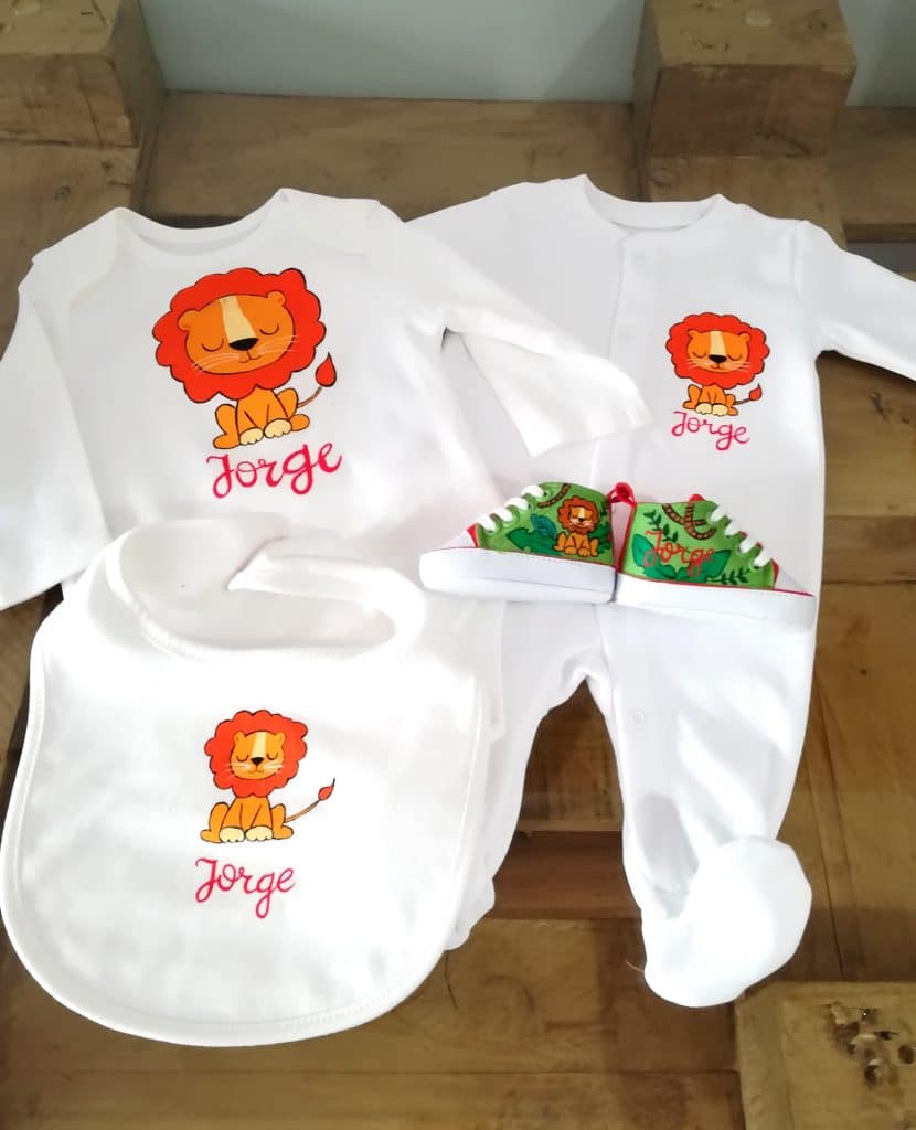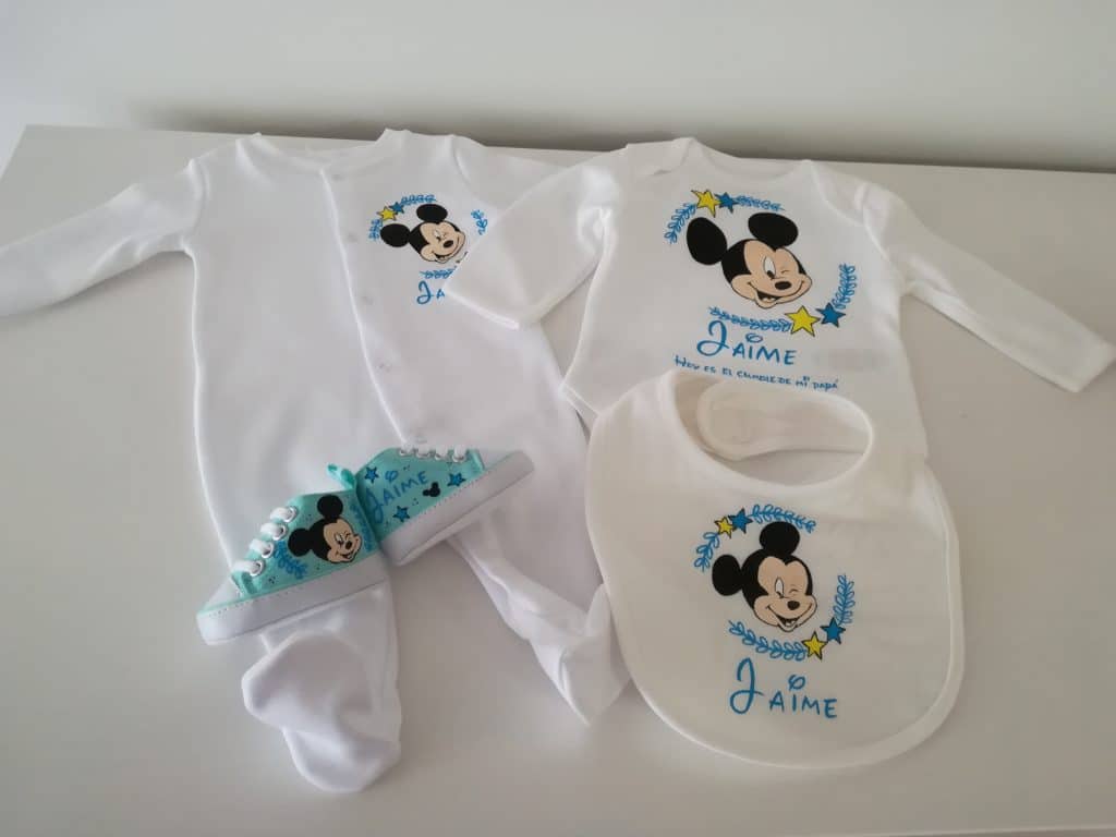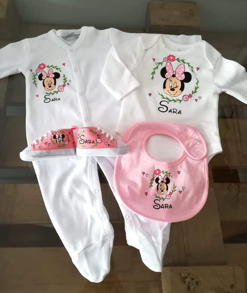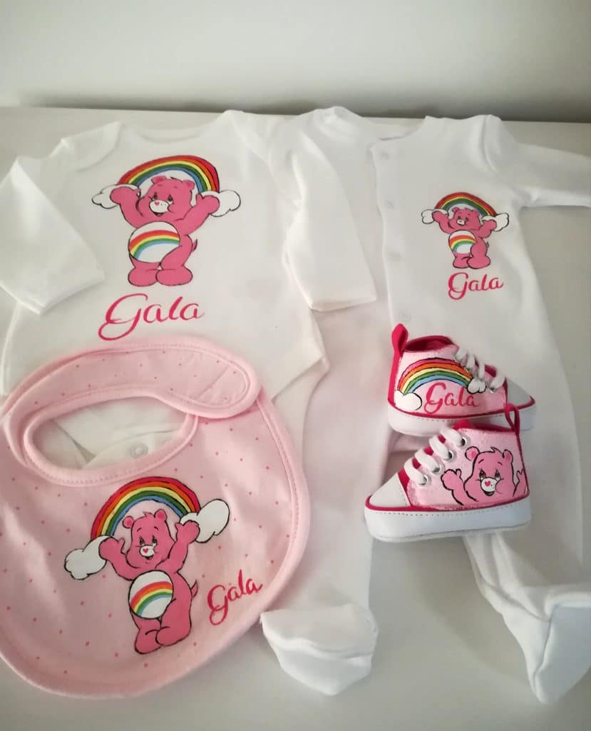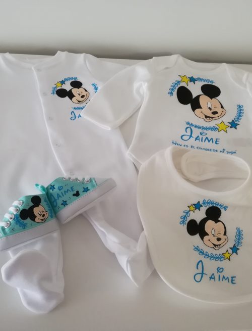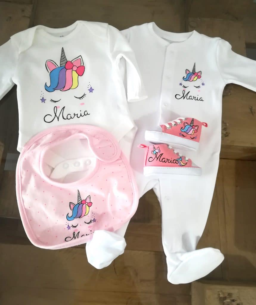 Incluye: un body (de manga larga o manga corta), un babero, un pijama y unas zapatillas