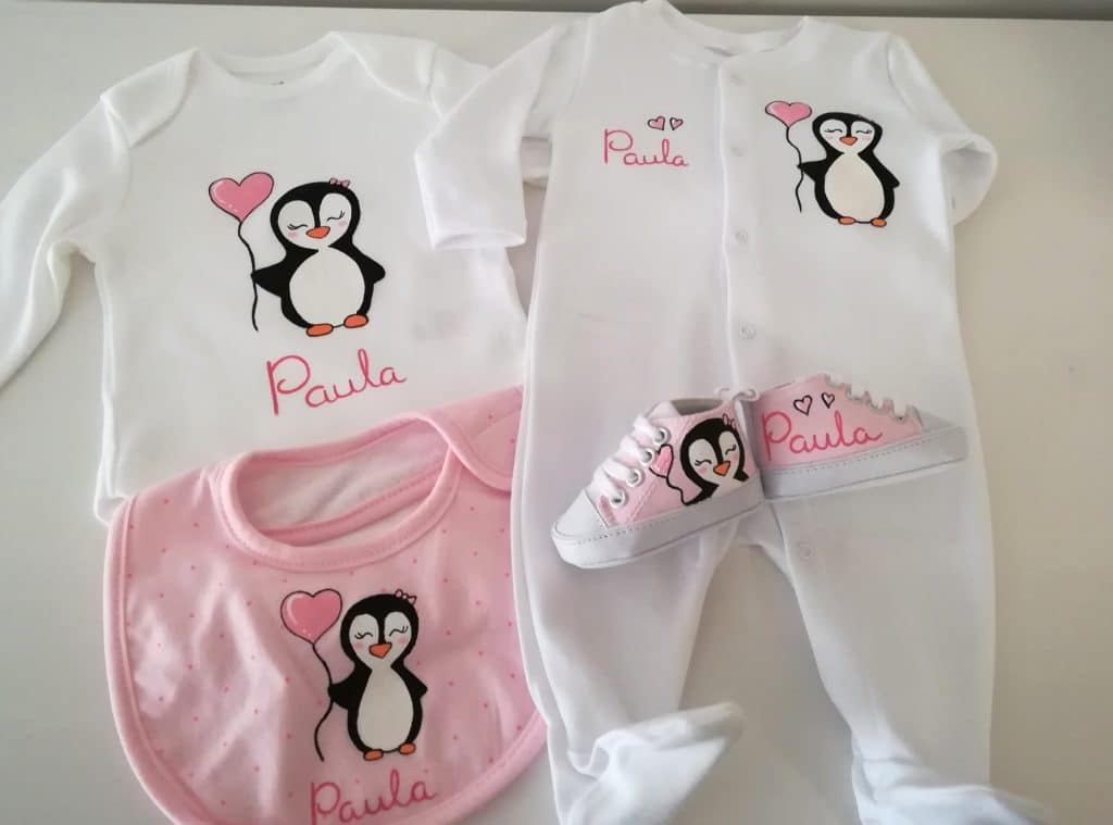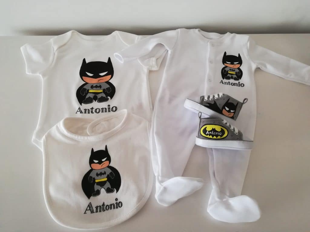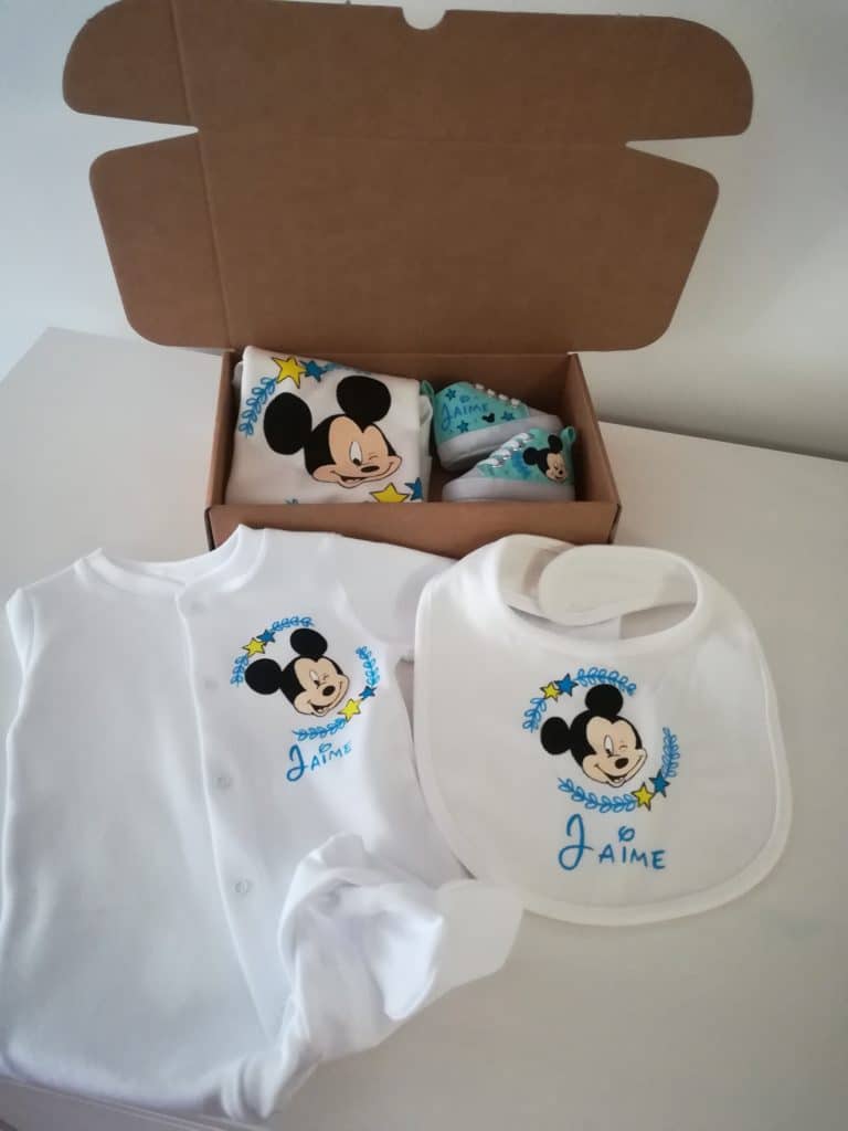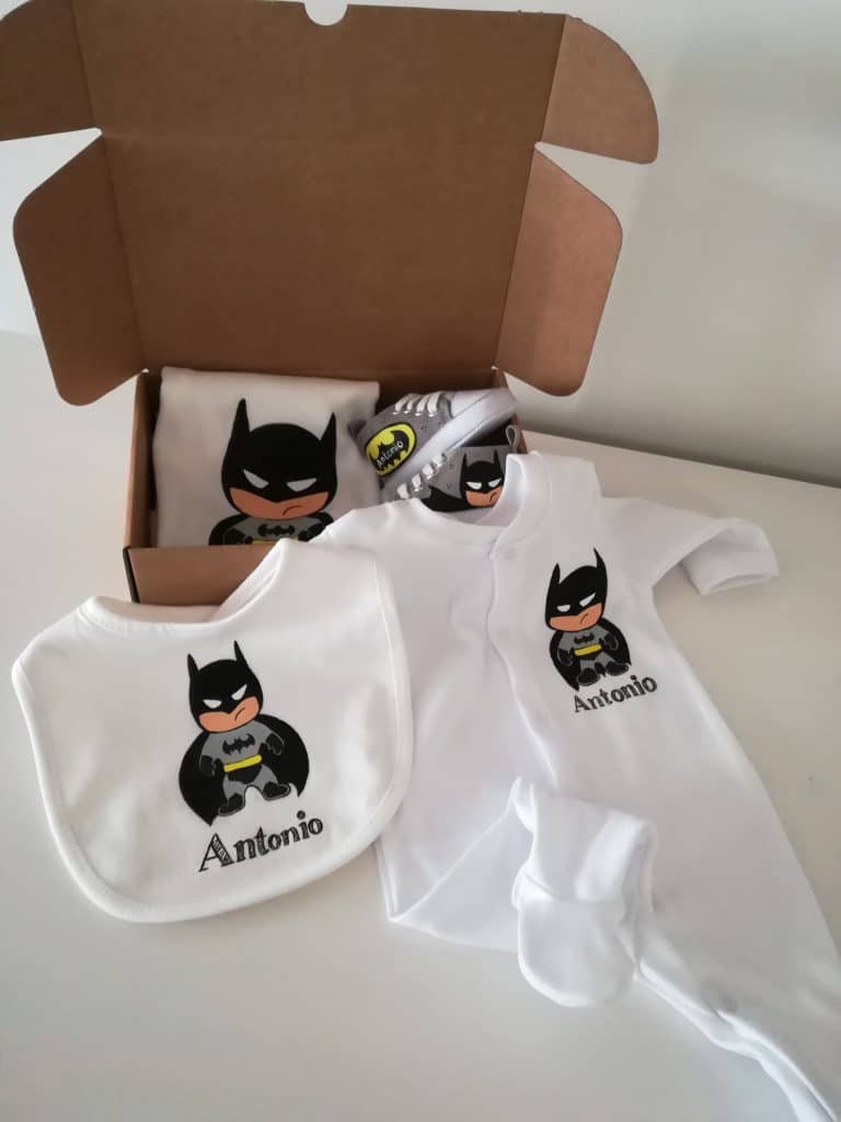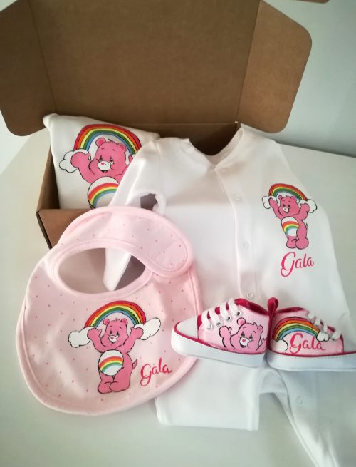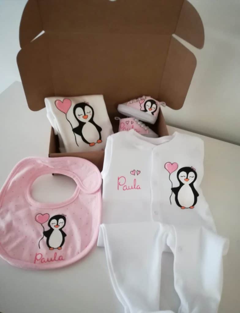 Incluye: un body (de manga larga o manga corta), un babero, un pijama y unas zapatillas