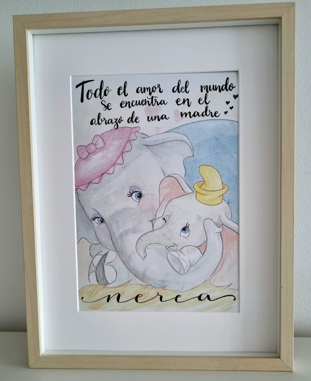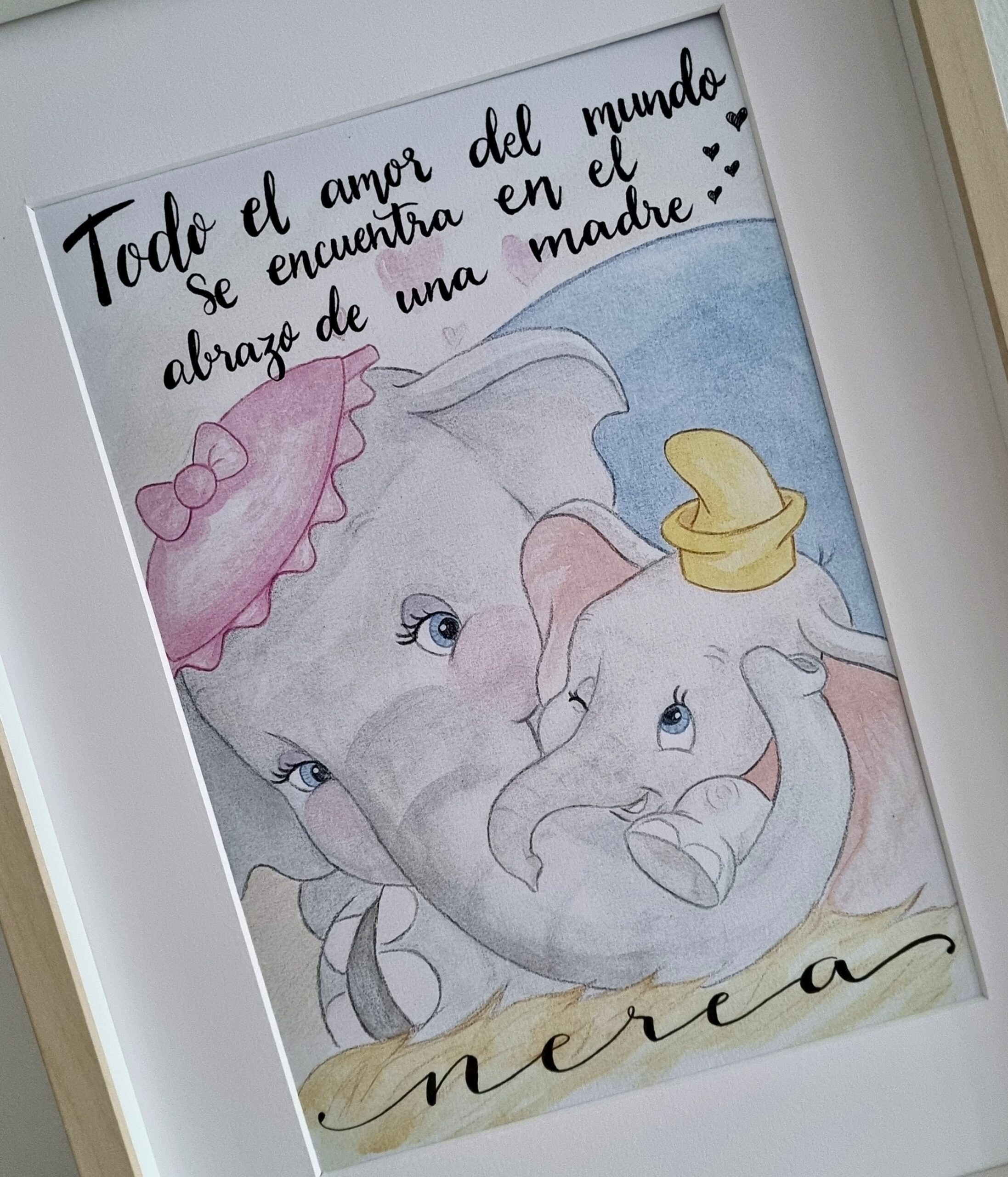 Todo el amor del mundo se encuentra en el abrazo de una madre, no se me ocurría mejor ilustración para este mensaje. Con esta lamina quiero homenajear a todas esas madres ,que con sus abrazos  curan todo lo malo que nos pueda pasar. Tamaño Din A4, impresas en papel de acuarela de 180 gramos y personalizada con el nombre que quieras